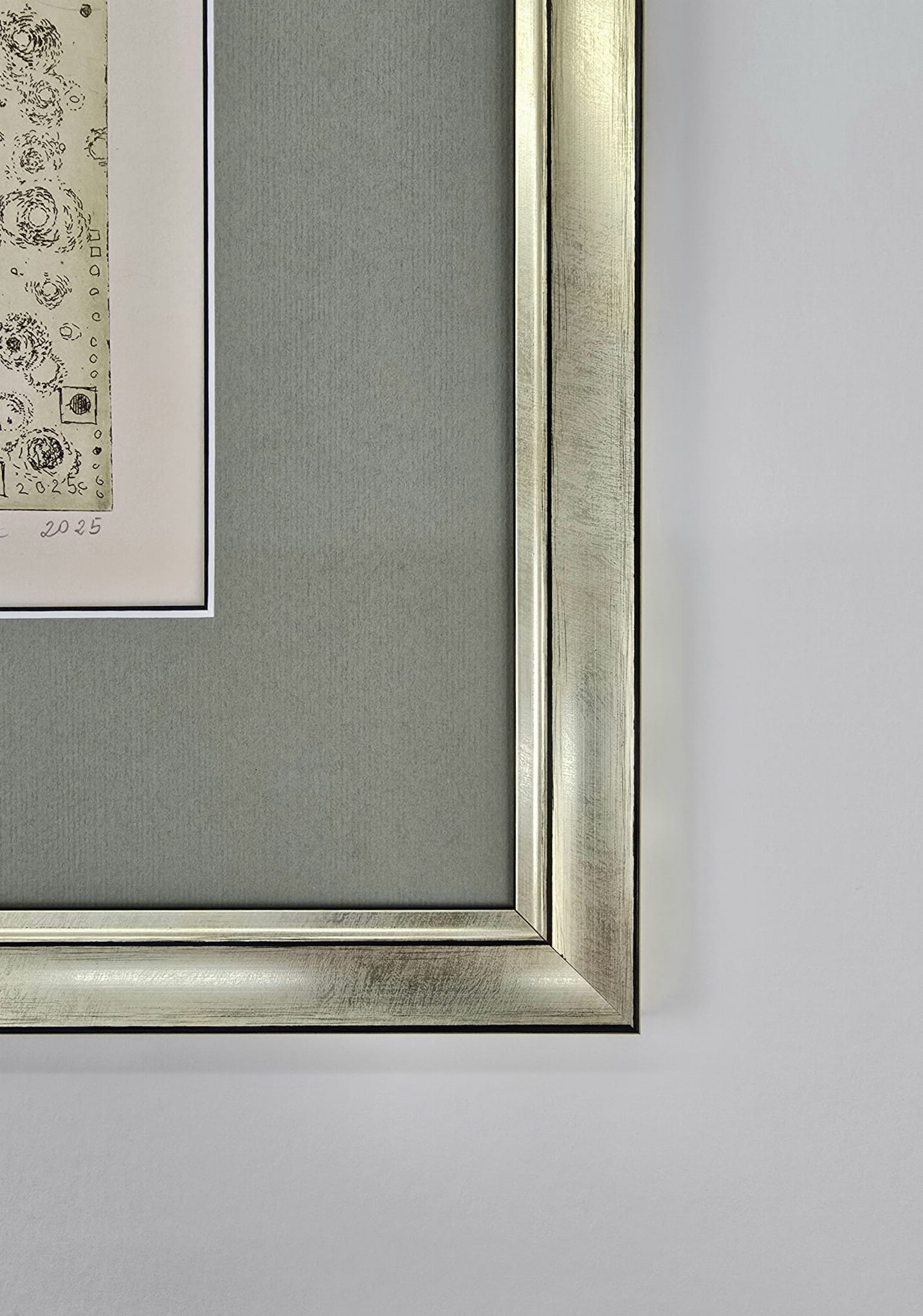 | Oprawa | rama drewniana- jasne złoto ,passepartout zieleń , szkło |