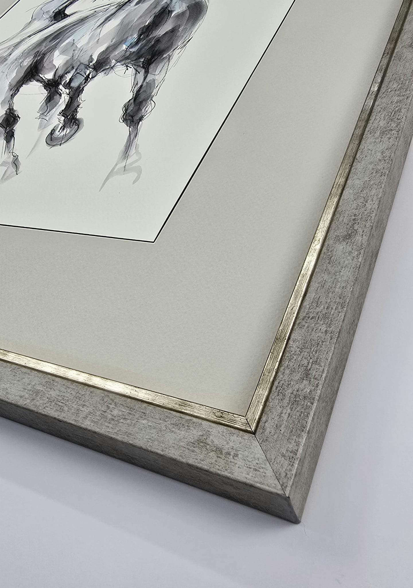 Oprawa rama srebrna , passepartout jasny popiel , szkło ,wysoki standard oprawy
